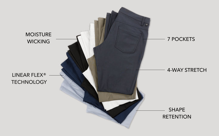 Linear Flex® fabric technology took a lot of trial and error to perfect the most durable quality and wearable soft fabric. Then we went on to perfect the fit so that it would have comfort, the right amount of stretch, shape retention, and style! This pant appeases the most active person to the most fashionable person all at the same time. Our modern flex fit will go with anything in your closet and comes in an array of rich colors.