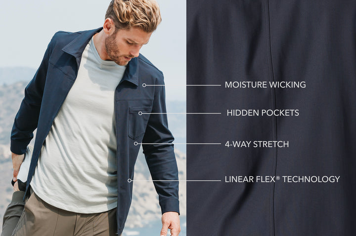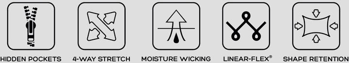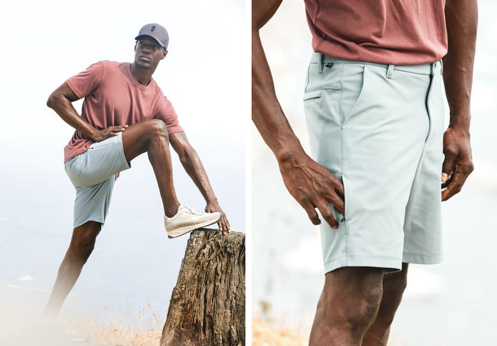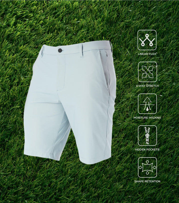 Our fashion forward 9" chino short is made in our Linear Flex® technology fabric. Designed with a back pocket hidden zipper, and two stylish functional zippers on the front to hold all of your valuables. This highly versatile short will keep you comfortable, functional, and looking polished.